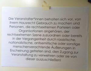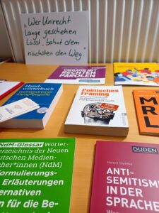Zum diesjährigen Jahresthema – Aktiv gegen Rechtsextremismus, Sexismus und Menschenfeindlichkeit – fanden bereits einige Aktivitäten im BücherFrauen-Netzwerk statt. Die Bandbreite reicht von Events wie der Performance „Auf das Leben – From the darkness to the light“ in der Regionalgruppe Köln/Bonn, über Kristina Poncins gehaltvollen Rundmails „Ruckzuck gegen Rechtsruck“ bis zur Podiumsdiskussion „Jedes Buch ein Stück Meinungsfreiheit?“ auf der Mainzer Minipressenmesse, gemeinsam veranstaltet mit den Verlagen gegen rechts.